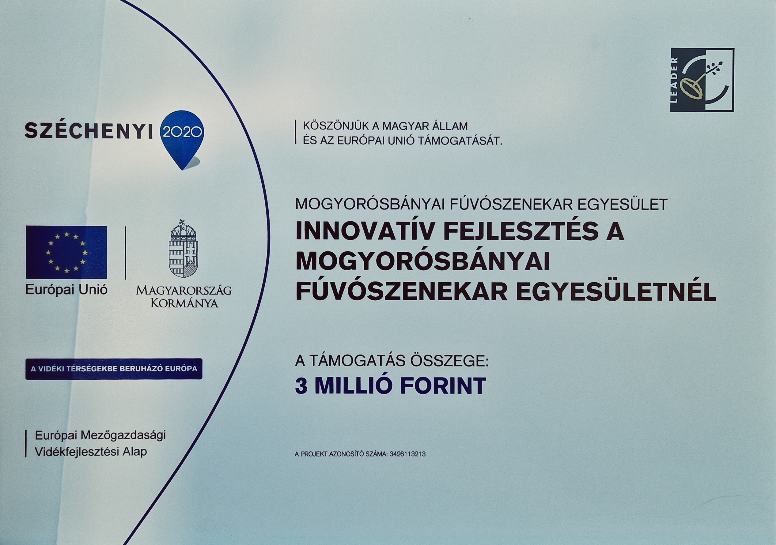 A projekt címe: Innovatív eszközfejlesztés a Mogyorósbányai Fúvószenekar Egyesületnél